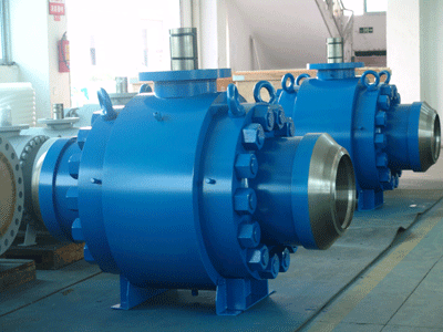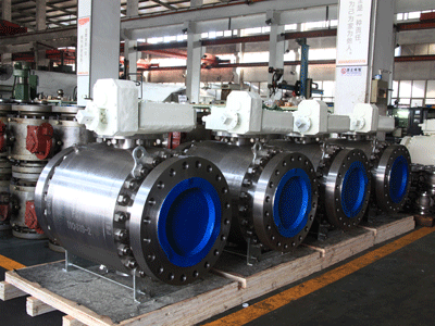 Trunnion Ball Valve, 1. Description of Trunnion Ball Valve: The Trunnion Ball Valve is also called trunnion mounted ball valve. The ball of trunnion ball valve is fixed and it doesn't move with medium pressure. It has floating seats. The seats move with the medium pressure to press the ball against the sealing O-Ring to ensure sealing reliability. Bearing could be mounted on either top shaft or bottom shaft by which it will reduce the operation torque. To ensure tight sealing at low pressures, special springs are applied to force the seats against the ball. 2. Design Features: Sealant Injecion Devices, Double Block and Bleed, Anti-Static Design, Fire Safe Design. Side Entry / Top Entry, Full Port / Reduced Port, Soft Seated / Metal Seated, Anti-Blow-Out Stem 3. Design Standards: API 6D, API608, BS5351, ASME B16.34 4. Size an Pressure: 2" ~ 40" (DN50 ~ DN1000), 150LB~2500LB 5. End Connection and Operation Type: RF, RTJ, BW, NPT; Lever, Worm Gear, Electrical, Pheumatic, Hydraulic 6. Material Specification: Body: WCB, LCB, A105, CF8, CF8M, CF3, CF3M, F304, F304L, F316, F316L, LF2, F51, Aluminium Bronze Ball: A105+ENP/TCC/CCC, F304, CF8, CF8M, CF3, CF3M, Aluminium Bronze Stem: A186 F6, F304, F316, F304L, F316L, Aluminium Bronze Seat Ring: PTFE, NYLON, PEEK, HF, or Metal Seated Gaskets & Packings: PTFE, Flexible Graphite or Stainless Steel O-Ring: Viton; Spring: AISI 6160 17-17PH, 17-7PH Trunnion: A186 F6, F304, F316, F304L, F316L, Aluminium Bronze Bolts & Nuts: B7/2H, B8M/8; Gland: F6, F304, F316, F304L, F316L, Aluminium Bronze Bonnet: WCB, LCB, A105, CF8, CF8M, CF3, CF3M, Aluminium Bronze