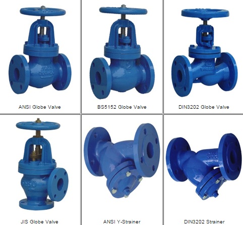 Cast Iron Globe Valve, Specification of Cast Iron Globe Valves: 1. Brief Introduction: The globe valve is a closing-down valve in which the closure member(often called disc) is moved squarely on and off the seat. By this mode of disc tavel, the seat opening varies in direct proportion to the travel of the disc. This proportional relationship between valve opening and disc travel is ideally suited for duties involving regulation of flow rate. 2. Material Specification: Body & Bonnet: Cast Iron or Ductile Iron Wedge: Ductile Iron, or Ductile Iron coated with brass Stem: Carbon Steel, Stainless Steel or Bronze Wheel: Cast Iron, Ductile Iron Yoke Nut: Ductile Iron or Bronze 3. Sizes and Pressure Ratings: 2" ~ 12" (DN50 ~ DN300) PN6, PN10, PN16; 5K, 10K, 16K 4. Standards: DIN, BS, JIS, ANSI
